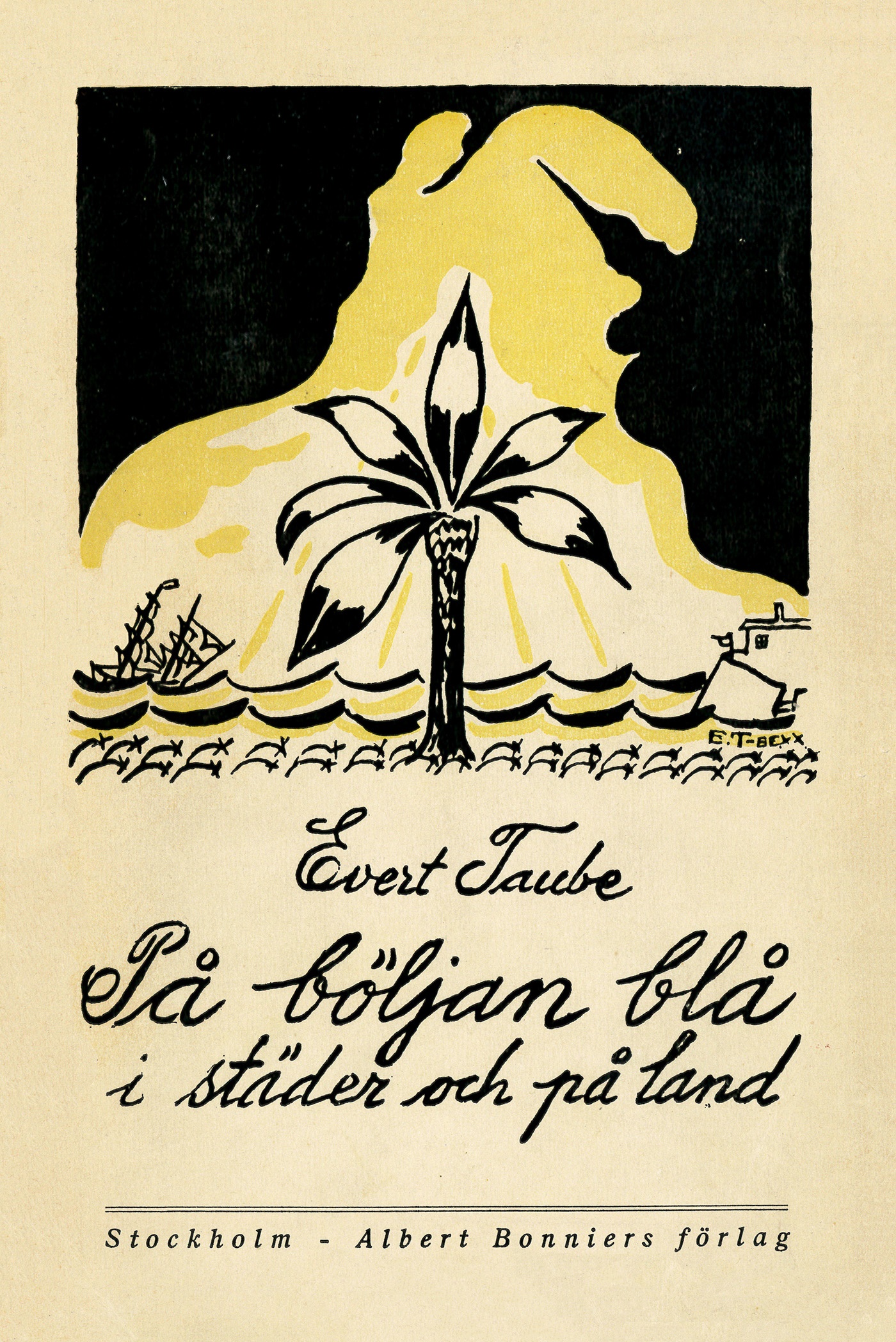Författaren, vissångaren och konstnären Evert Taube (1890–1976) är en av de mest kända svenskarna. Han är en av våra stora prosaister – en reseskildrare av rang, en skicklig novellist och en romanförfattare som i decennier kämpade med romanformen. På böljan blå, i städer och på land utkom första gången 1920. I den skildrar han resor genom Spanien, Frankrike och Italien samt det första mötet med hans blivande fru – konstnären Astri Bergman, i boken kallad fröken Blåklint – på Café la Rotonde i Montparnasse, Paris.