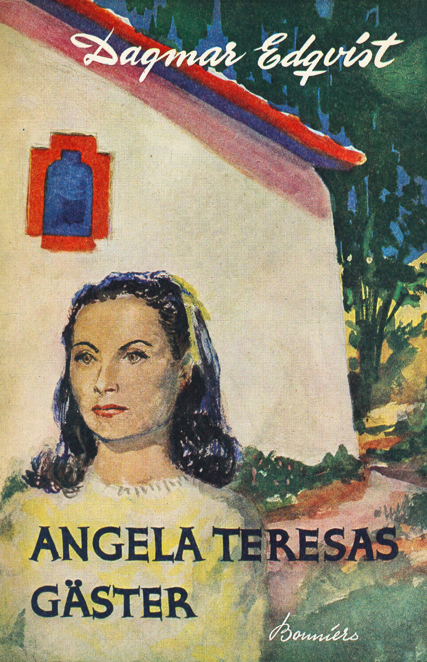 Efter ett upplöst äktenskap och en ny kärleksupplevelse i Frankrike har den svenska författaren David Stockmar, huvudperson i Angela Teresas gäster, tagit sin tillflykt till den lilla Medelhavsstaden Solaz för att få vara obunden och fri. Fri i Spanien – enkelt för svensken men ouppnåeligt för Jordi, den idealistiske studenten som hörde till den förlorande sidan i inbördeskriget och, förföljd och kuvad men stolt, knappt vill ta emot hans vänskap och sympati. Det dröjer emellertid inte länge förrän David anser att hans ”frihet” är ofruktbar. Lucienne Marie, den franska flickan som han älskar men har flytt ifrån, kommer till honom på hans bön, och deras kärlek når en ny och ljuvlig mognad i Angela Teresas vackra hus bland apelsinlundarna. Men samtidens spanska verklighet tränger även dit. De båda gästerna blir indragna i ett dramatiskt händelseförlopp, som utgör berättelsens spännande kulmen.