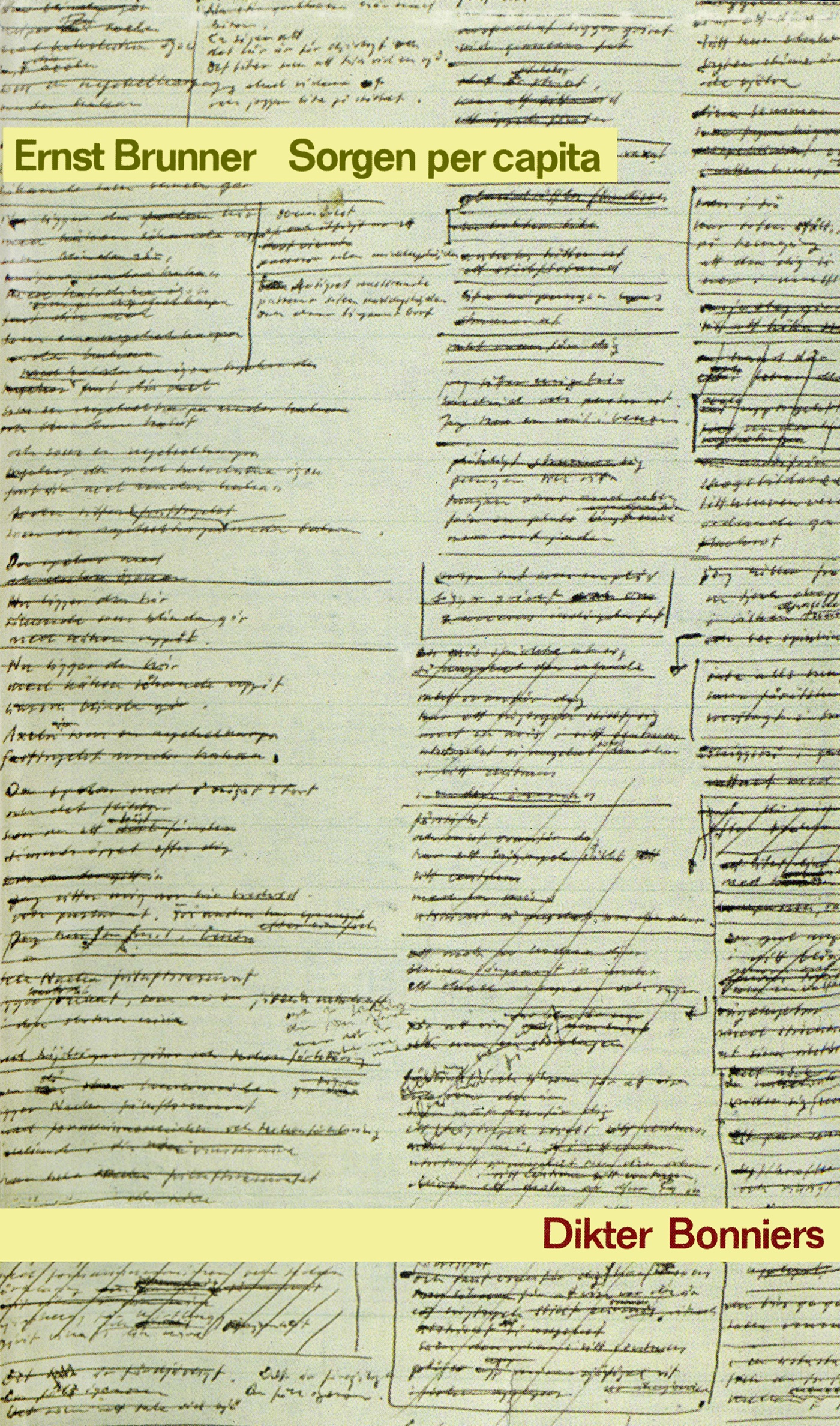 Ernst Brunner är en av våra främsta prosaister och lyriker. Han debuterade 1979 med diktsamlingen Jag ändrar ställning klockan tre. Förutom ett stort antal diktsamlingar och romaner har han i biografisk form skildrat Edith Södergran, Carl Michael Bellman, Karl XII och Jacob Johan Anckarström. Diktsamlingen Sorgen per capita utkom första gången 1990.